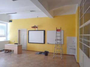 I o prázdninách to ve škole žije – zejména prací řemeslníků. Hned od 1. července postupně nastupovali do budov gymnázia i obchodní akademie elektrikáři (hlavně výměna svítidel), podlaháři (mění se podlahy např. v budoucí primě, kvintě, učebny IVT na gymnáziu), malíři (malují se učebny v uvedených třídách + JU4 + na sekretariátu gymnázia a v učebně EKO1 a JAZ1 + ve vstupním prostoru na obchodní akademii) nebo instalatéři (oprava odpadů na gymnáziu). Postupně se specializovanou firmou čistí povrchy tří hřišť s umělým povrchem na gymnáziu a obchodní akademie. Opravuje se kotelna na obchodní akademii. A samozřejmě se dokončuje úprava předprostoru budovy gymnázia (stavební akce a většina sadových úprav by měla být hotova na začátku prázdnin, něco zbyde na podzim (zejména sázení cibulovin – nelze je sázet v létě). Pan školník zrekonstruoval malé griloviště v areálu gymnázia, vyměnil obklady kolem umývadel v některých učebnách a natřel zídky u víceúčelového hřiště. A gymnázium pořídilo do učebny IVT1 15 nových počítačů (učebna prochází také dispozičními změnami).
