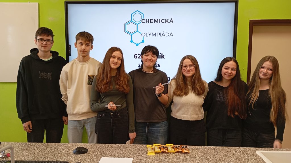 Gymnaziální studentky a studenti tercie A a kvarty A soutěžili ve školním kole chemické olympiády. Z testu, teoretických domácích úloh a školního laboratorního úkolu si nejvíce bodů odnesla vítězka Emma Houserová (kvarta A). Druhou pozici obsadila Karolína Rouchalová (kvarta A) a na třetí příčce skončila Michaela Dostálová (tercie A). Děkujeme zájemcům o soutěž a do okresního kola přejeme spoustu času na přípravu a hodně štěstí při měření sil s vrstevníky z okolních škol.